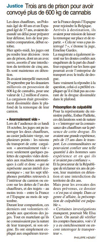 Trois ans de prison pour avoir convoyé plus de 600 kg de cannabis