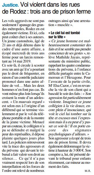Vol violent dans les rues de Rodez : trois ans de prison ferme