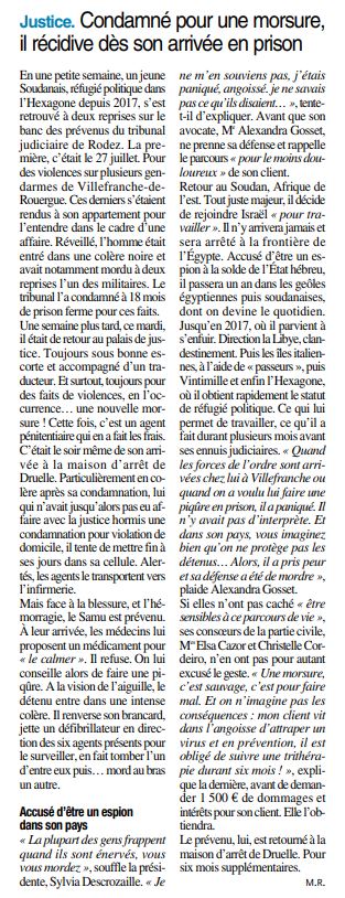 Condamné pour une morsure, il récidive dès son arrivée en prison